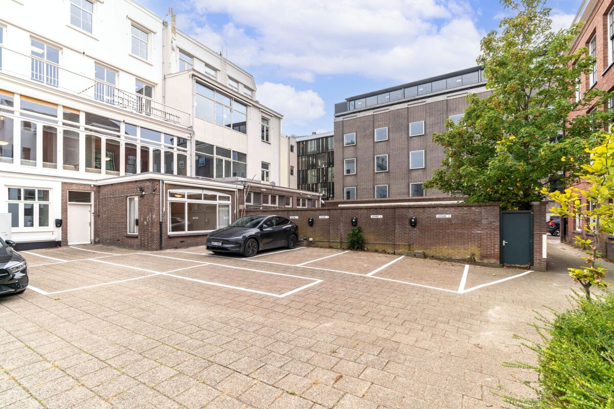 Het pand beschikt aan de achterzijde over een eigen parkeerterrein met ca. 10 parkeerplaatsen en 6 oplaadpalen, welke afgesloten kan worden met een hek.